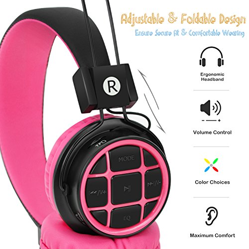 Comfort and portable: Adjustable headband fits growing kids, with super soft ear pads swivel 90°folding for maximum comfort and easy storage