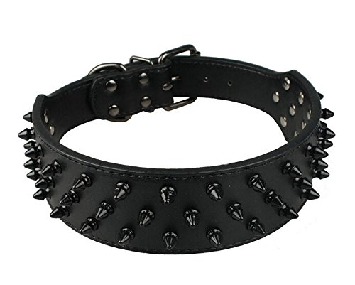 Benala 2" Black Leather Dog Collars Cool Spiked Studded Pet Dog Collar For Medium Large Dogs Pitbulls Mastiff Bully