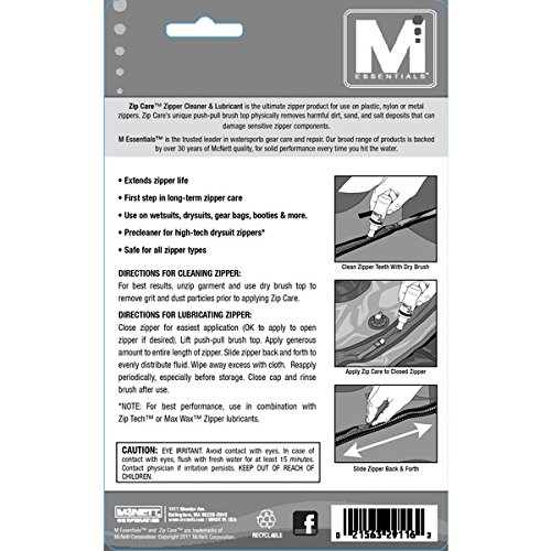 -. Brand : mEssentials -. Color : Multi -. EAN : 0672032070285 -. Feature : One (1) M Essentials Wetsuit Zip Care 2 oz Bottle Cleaner & Lubricant from M Essentials / Prolongs the life of your wetsuit / Easy to use -. Label : M Essentials -. Manufacturer : M Essentials -. MPN : OOMNE0ZPC020O00 -. PackageQuantity : 1 -. PartNumber : OOMNE0ZPC020O00 -. ProductGroup : Health and Beauty -. ProductTypeName : OUTDOOR_RECREATION_PRODUCT -. Publisher : M Essentials -. Studio : M Essentials -. Title : M Essentials Liquid Zipper Cleaner & Lubricant 2oz Bottle -. UPC : 672032070285