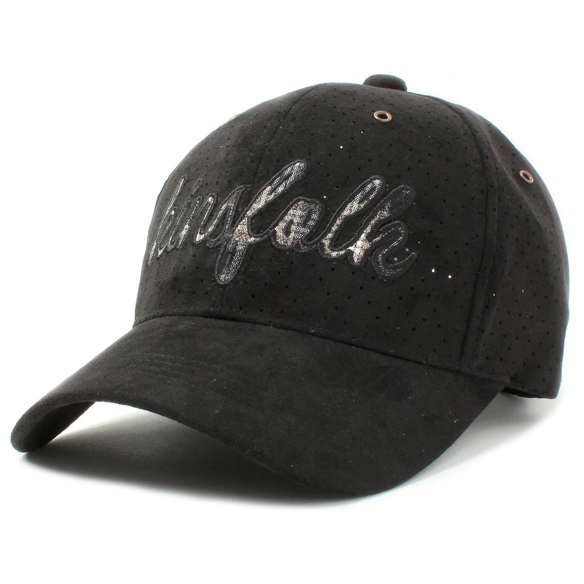 コメントチェック生地を土台としたフロントのデザインが特徴的なパンチング加工ボディのベースボールキャップ