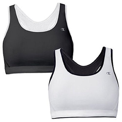 CHAMPION WOMENS 2-PACK REVERSIBLE DOUBLE DRY SPORTS BRAS, WHITE/BLACK, SMALL