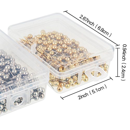 Map tacks pins material: pins head is made of plastic, vacuum coating process, gold and silver color, metal point is made of stainless steel, durable, resist rust