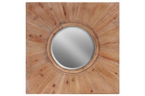 Urban Trends Wood Round Wall Mirror with Wood Square Frame Stained Wood Finish Brown, Brown