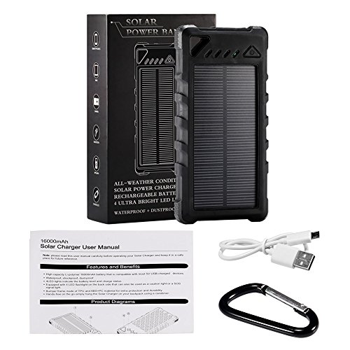 GRDE 16000mAh powerbank Tragbar Akku solar ladegerat powerbanks Externer Akku Batterie super wasserdicht ladegerat fur iPhone iPad iPod Mobile Handy Tablet