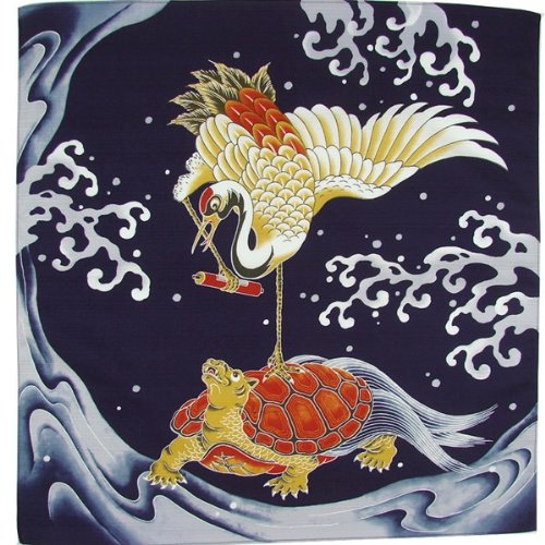 -. Title : 小風呂敷(ふろしき) 無病長寿風呂敷 鶴亀一本立ち 中巾(50cm幅)