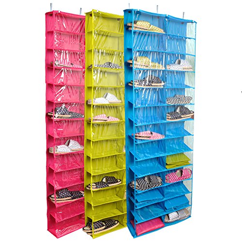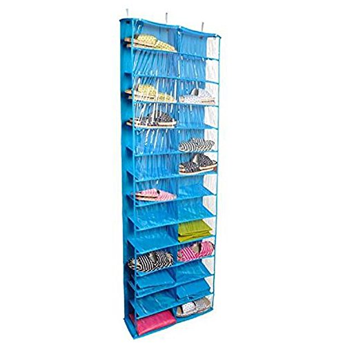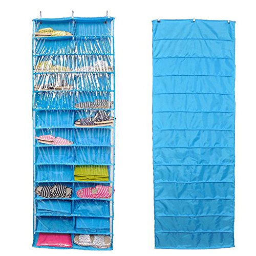 -. Feature : 1.DESIGN;folding design,do not take up space,convenient to storage / 2,CAPACITY;this shoe rack have 26 pockets.With PVC Covering film,clear at a glance. / MATERIAL;420D oxford fabric+PVC +PP hollow board+metal hooks / 4.SIZE;56(L)*15(W)*160(H)CM,it suits to hang over the door / COLOR;there are 3 beauty candy color can be chosen;red,blue and yellow
