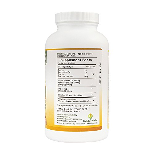 Buddha's Herbs Organic Flaxseed Oil (1000 mg) 200 Count - 500mg Omega 3 - Vitamin Supplements - Flaxseed Oil Pills - Organic Flax Oil - Nutrition...