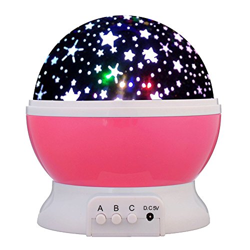 -. Feature : 3 MODEL: A button: Warm white light on/off button;the "B" button is for cycling through color options and after the 8 modes end up you can press "B"button to close the light."C"button is for the rotating motion option. / POWER AND LED TYPE: The star lighting lamp has 4 pcs LED(warm light, blue light, green light, and red light.)Power Supply by: DC5V/USB cable ( AC adapter not included) or Batteries powered( batteries not included). / SPECIAL DESIGN:1.projection mode:projects a map of the colorful stars onto your ceiling and walls with this new starlight projector. Base on rotating, it creates a larger and more Brilliant light show for your viewing entertainment. 2.non-projection / IDAL FOR: 360 Degree Rotating Night Light Kids Rotating its base, Ideal for decorating wedding, birthday, parties. The star light can be use to decorate wedding, birthday,parties,Bedroom,Children Room,for Baby Nursery and kids child Gift . / WARRANTY:If there any issue about this product, please feel free to contact us first,We'll get it resolved as soon as, we will give the best solution in the first time.