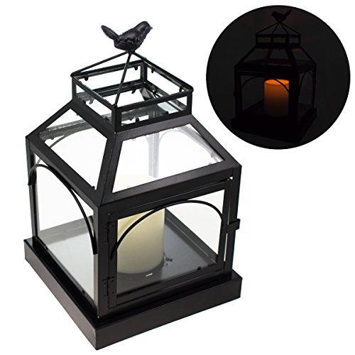 -. Title : Indoor/Outdoor Bird Lantern Centerpiece LED Pillar Candle Black Patio Decorative