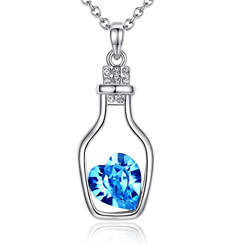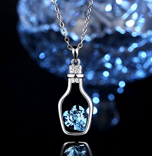 -. Title : LOVES【ハート柄ポーチ付き】瓶型 ブルー ハート ラインストーン ネックレス ペンダント