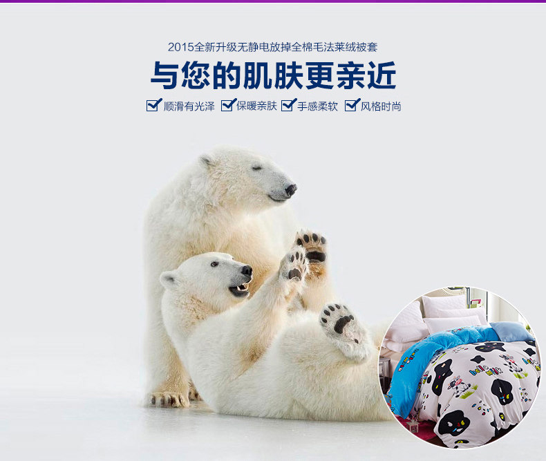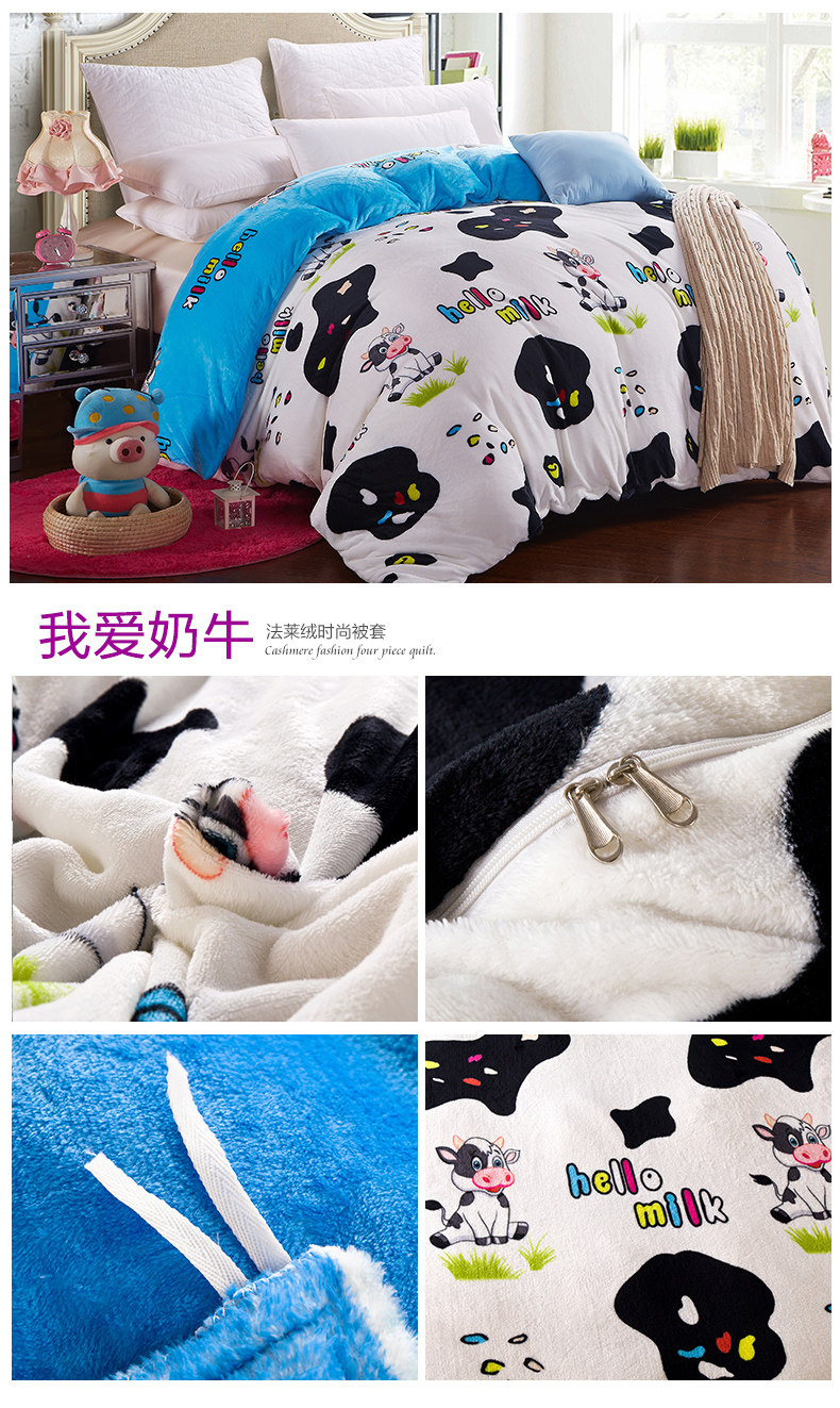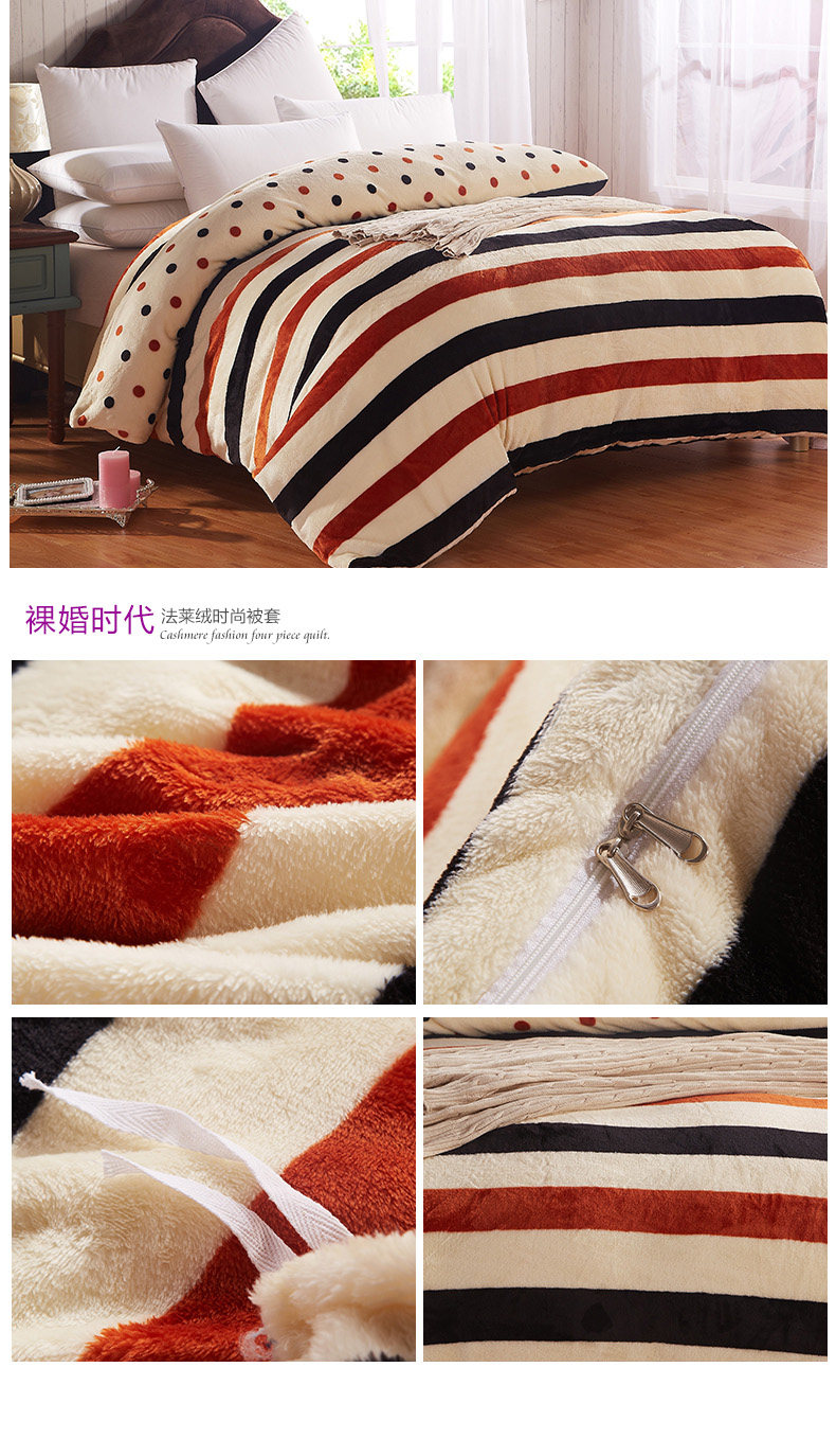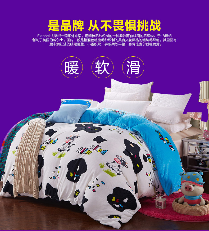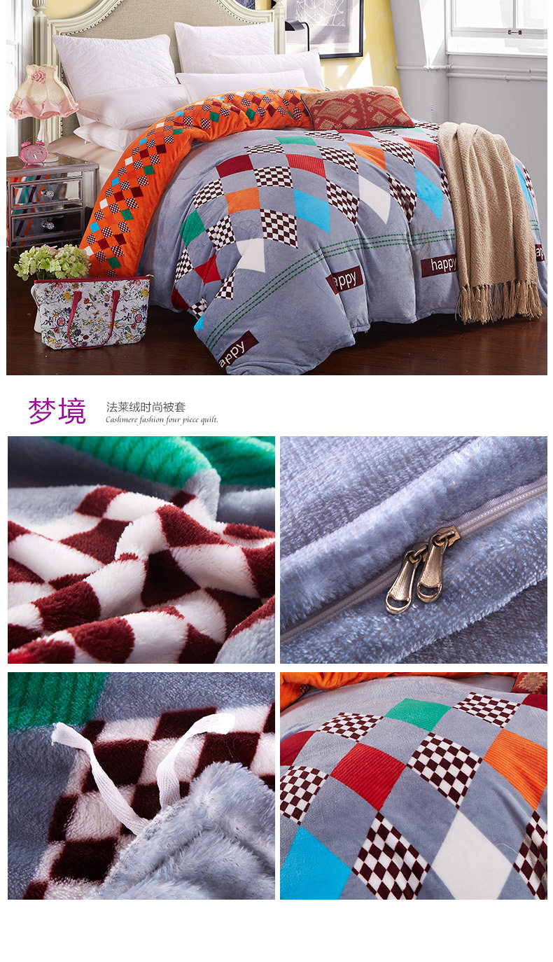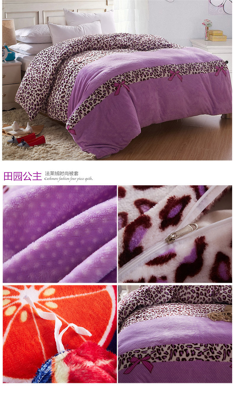 Product Name: flannels quilt coverProduct Fabric: 100% polyester fiberProduct lining: 100% polyester fiberProduct Grade: QualifiedStyle: Modern FashionFabric technology: active dyeingSpecifications: 1.5 * 2 m, 1.8 * 2 m, 2 * 2.3 m, 2.2 * 2.4 m