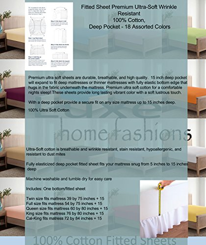 -. Title : 100% Cotton Fitted Sheet- 15-Inch Depth Deep Pocket Brushed, Breathable, Extra Soft & Comfortable, - Wrinkle, Fade, Stain & Abrasion Resistant Luxury - By Big 7 Home