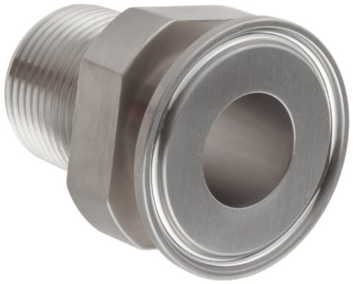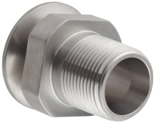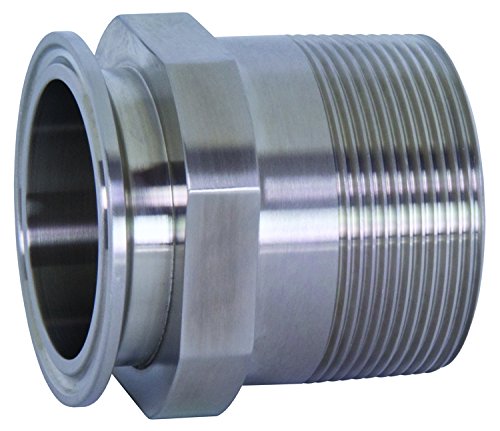 This Dixon 21MP-G series clamp adapter sanitary fitting is made of stainless steel 304 and has a tube connection and a male NPT connection. This adapter fitting connects pipes or fittings with different end types. It clamps onto a tube on one end and has male National Pipe Taper (NPT) threads on the other for connecting to female threaded pipe. The clamp end creates a non-permanent seal, providing access to lines, and the NPT threads create a tighter seal than straight threads. It is made of stainless steel 304 for resistance to corrosion and high temperatures. This clamp adapter sanitary fitting has a maximum operating pressure rating of 250 pounds per square inch (psi) at 70 degrees F ambient temperature and is suitable for use in food, beverage, and dairy applications.