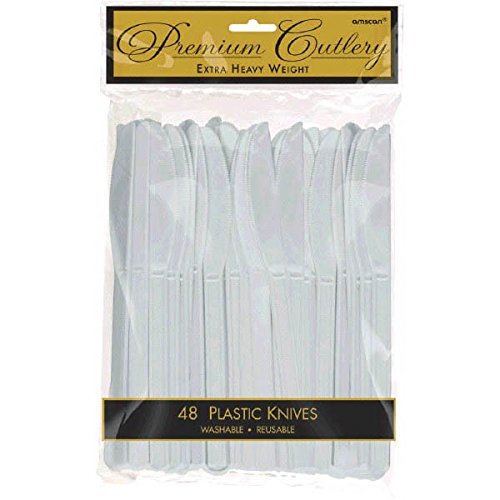 Party Perfect Plastic Knives Tableware, Silver, Full Size, Pack of 48