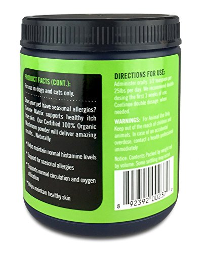 Canine Matrix Skin & Coat gives your dog the comfort of healthy, itch-free skin and a full lustrous coat with Skin and Coat Matrix. Our Certified 100% Organic Mushroom powder will deliver amazing results, Naturally.