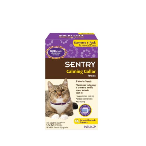 Studio : Sentry Publisher : Sentry Binding : Misc. Product Description Good Behavior Pheromone Collar helps cats in fearful or stressful situations (separation anxiety, visitors, other household cats, loud noises, new baby, vet visits, traveling). Good Behavior Pheromone Collar provides a convenient alternative to diffusers which are limited for use in the confines of a designated room. How does it work? Good Behavior Pheromone Collar mimics the pheromone that the mother cat produces to calm and reassure her kittens. Cats recognize these pheromones throughout life. It mimics the natural way to help cats cope with new and fearful situations. Lavender Chamomile fragrance. 0