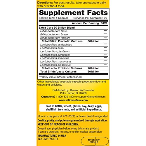 Renew Life Extra Care Probiotic, Ultimate Flora, 50 Billion, 90 Capsules