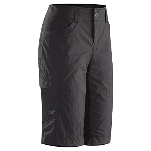 FEATURES of the Arcteryx Women's Parapet Long Short TerraTex fabric is lightweight, quick drying and features good stretch Redesigned features includes wide waistband with belt loops, zippered fly closure with snap Updated styling to hand pockets, two rear pockets and two flapped thigh pockets with volume pleat Gusseted crotch for mobility and comfort Revised for a better fit Articulated patterning for unrestricted mobilityFeature