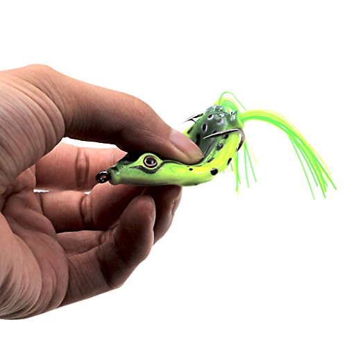 COOL SWIMMING ACTIONS - Topwater frog lures are soft and flexible,featuring hollow rubber body lure,high-resolution body detail, life-like swimming actions in water,and hidden 2 hook rig making it almost snag resistant so you can throw it right over lily pads and weed beds.