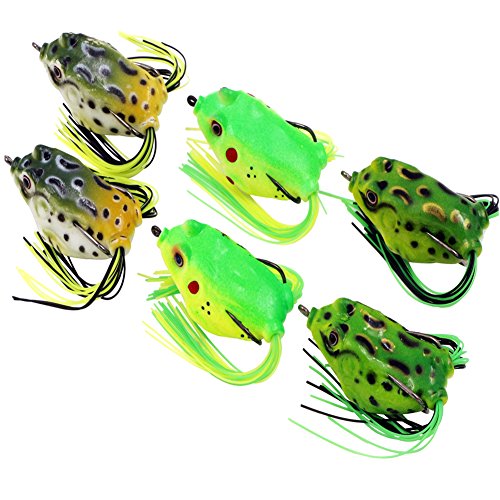 PACKAGE INCLUDE - 6pcs(3 colors) Topwater Frogs Fishing Lures Baits,2 fishing lures with 1 Indepence package.