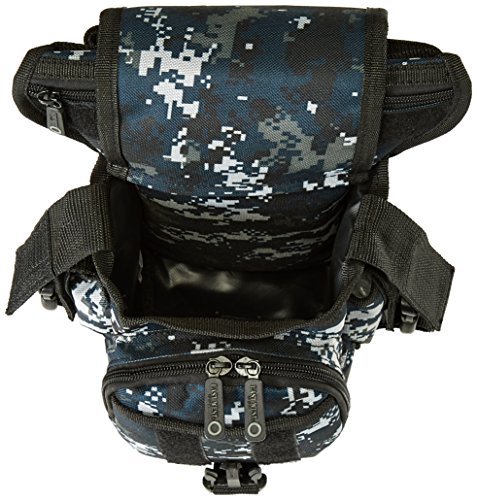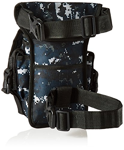 -. Binding : Sports -. Brand : East West U.S.A -. Feature : Pockets: 1 interior zip, 5 exterior -. Label : East West USA -. Manufacturer : East West USA -. Model : RTC519-P -. MPN : RTC519 - ACU -. PackageQuantity : 1 -. PartNumber : RTC519 - ACU -. ProductGroup : Sports -. ProductTypeName : SPORTING_GOODS -. Publisher : East West USA -. Studio : East West USA -. Title : East West U.S.A RTC519 Tactical Thigh Pack Waist Belt Drop Leg Utility Bag, Navy Camo