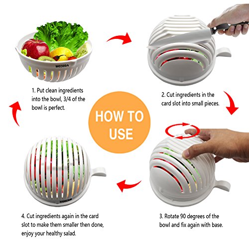 Fast & Safe. Make healthy salad in 60 seconds, cut the vegetables and fruits in the card slot, cutting board free, do not worry about cutting your fingers anymore.