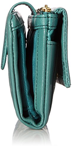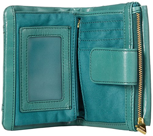 Interior details: 1 bill compartment, 1 id window, 1 zipper pocket, 2 slide pockets, 12 credit card slots