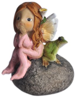 Top Collection Enchanted Story Fairy Garden Little Fairy and Frog on Stone Outdoor Statue