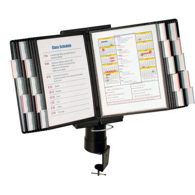 -. Feature : Organizer pivots a full 360-degrees and tilts 25-degrees to position the pockets at the optimum view / Takes up minimal desk space when attached to any desktop up to 2.5" (60 mm) thick with included hand / Includes 20 letter-size pockets with 20 index tabs. / Display up to 40 pages of letter-size reference sheets in transparent protective pockets. / Basic assembly is required.