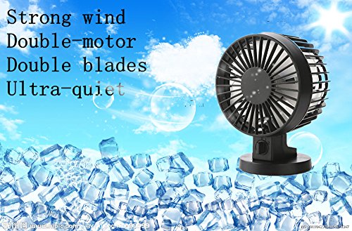 LingsFire® USB Powered 2-Mode Speed Adjustable Double Blades Mini Desk Fan Portable Ultra-Quiet Cooling Fan for PC Laptop Notebook Power Bank (Black)