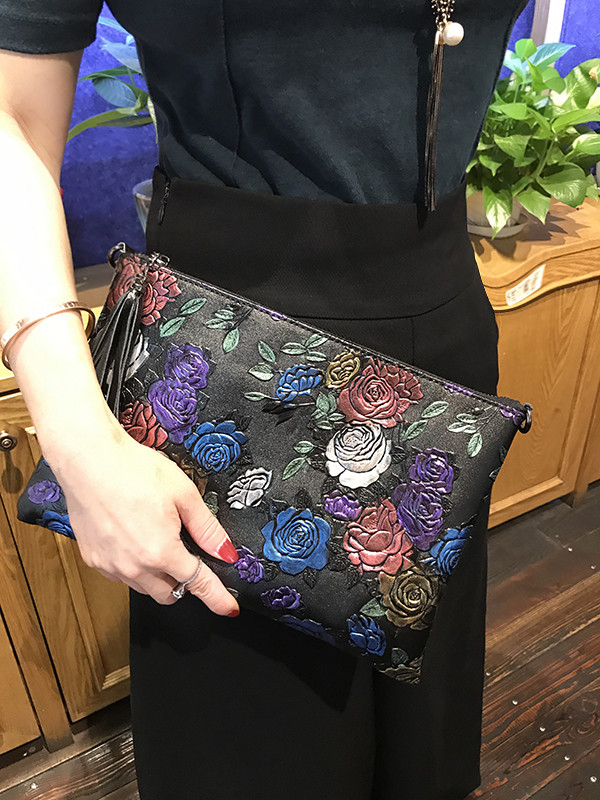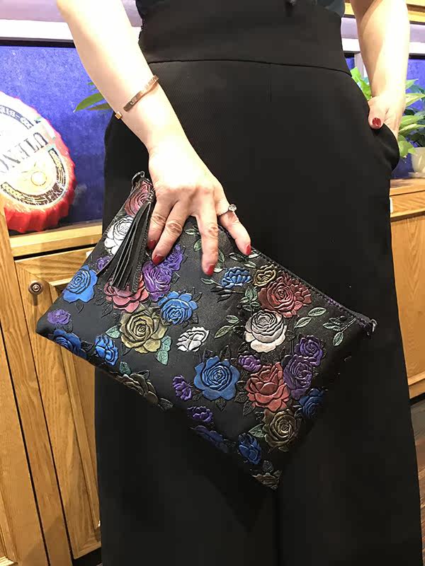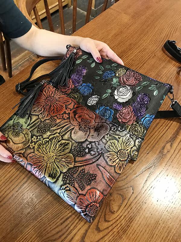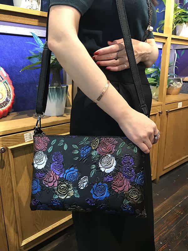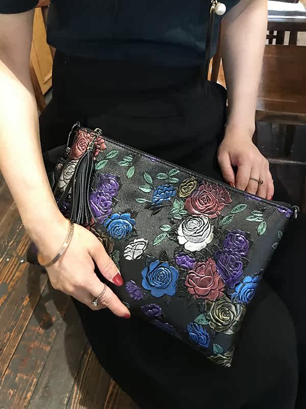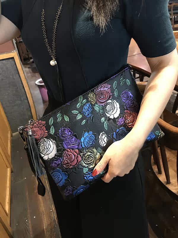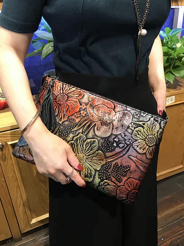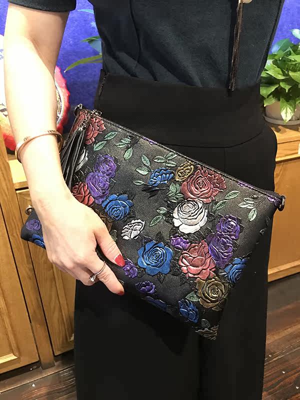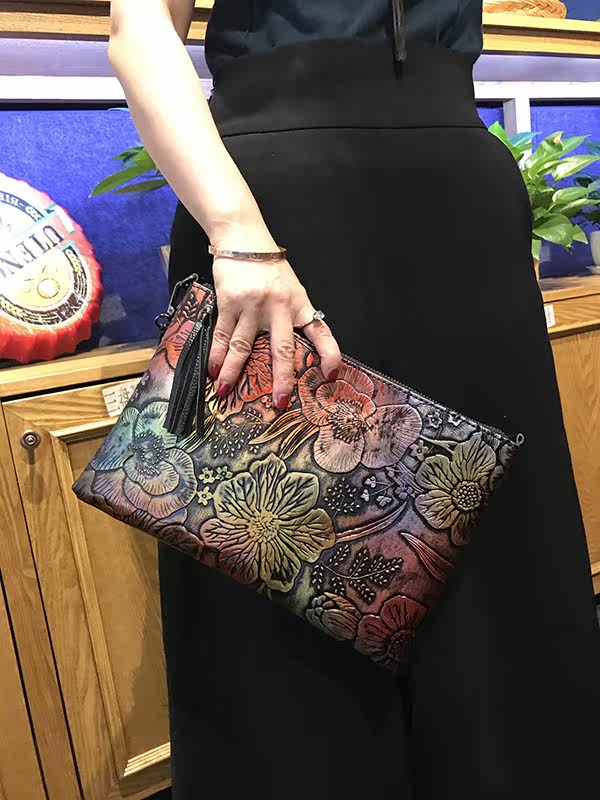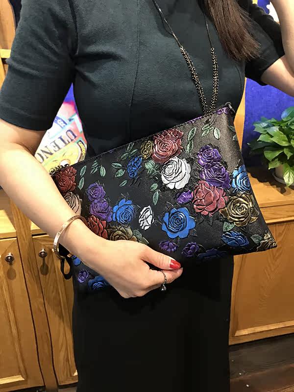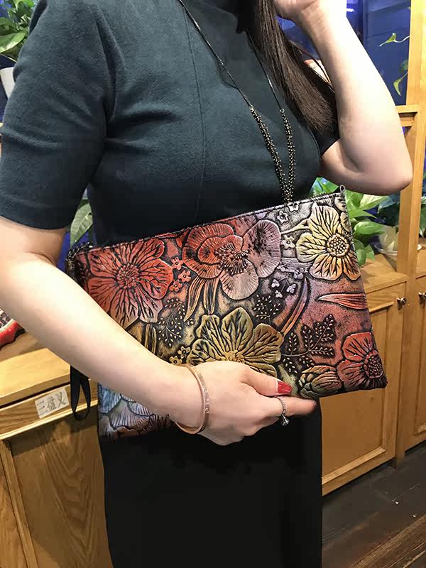手拿包女新款复古时尚压花手包潮流个性手挽包简约单肩斜挎包