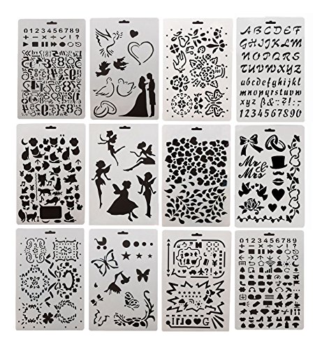 - 12 DIFFERENT STYLES TEMPLATE WILL RICH YOUR LIFE - The drawing painting stencils have diverse appearances and with bulks of small hollow patterns, you can draw lots of cute patterns even if with poor drawing skills.12 different styles will easily transform your boring journal pages into beautifully organized layouts and pleased your heart. It's convenient to use at school,office, travel or leave some at home