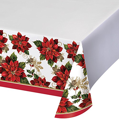 - Border design features festive red poinsettia and gold accents