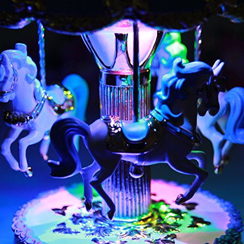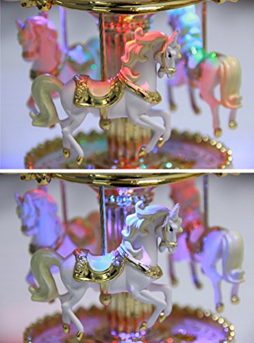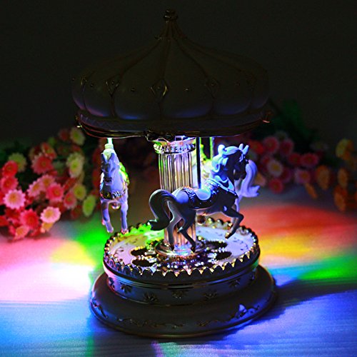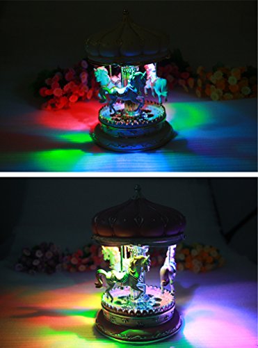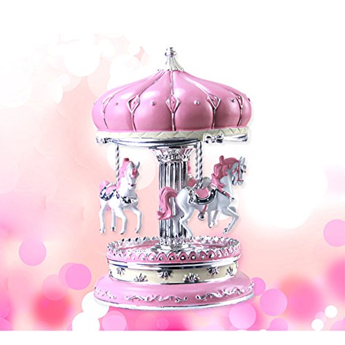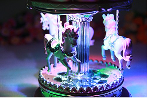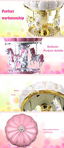 - Feature : High-grade resin and gold plating music box with three horses / Play the Castle in the Sky Tune,horses can rotate when music play / It has Romantic pink and beige 2 colors to choose,and can have LED light Gradient function. / Perfect workmanship,Unique Castle of Dome,Smooth lines / Perfect Romantic Anniversary Birthday Wedding Valentine's Day Christmas Gifts for Women Girlfriend