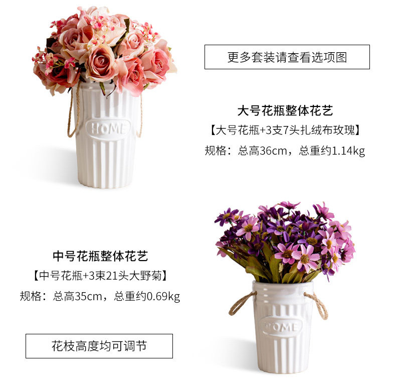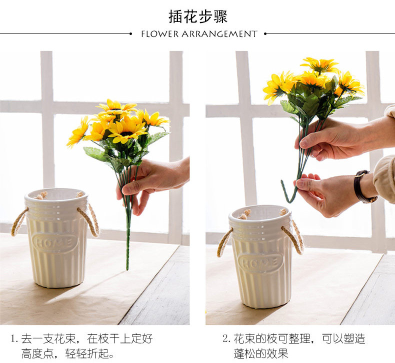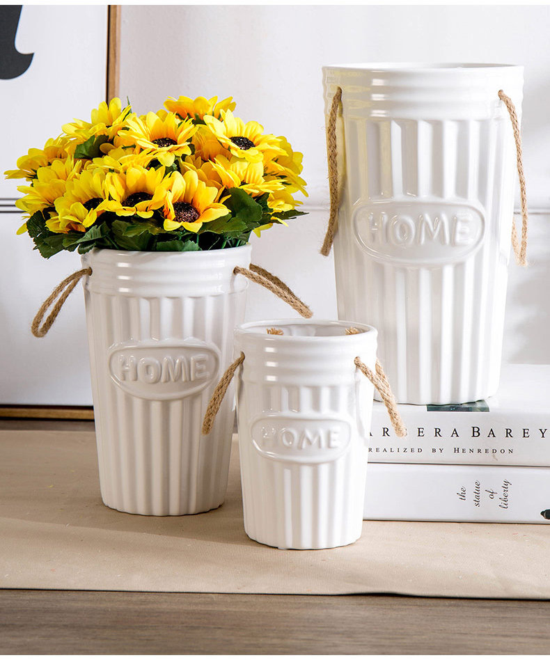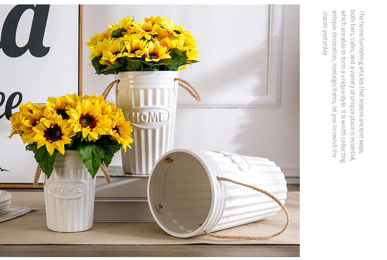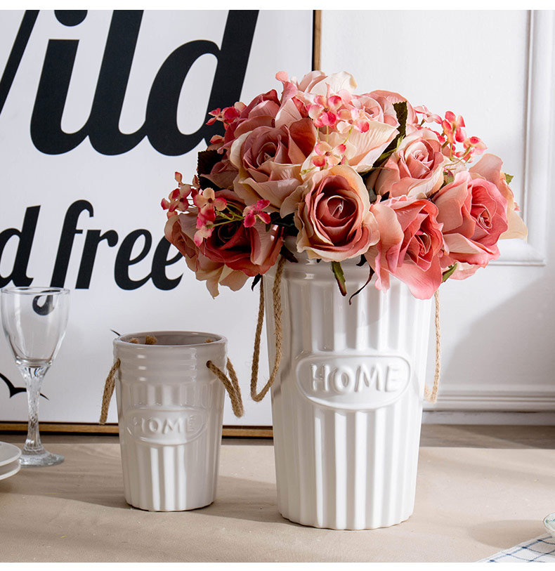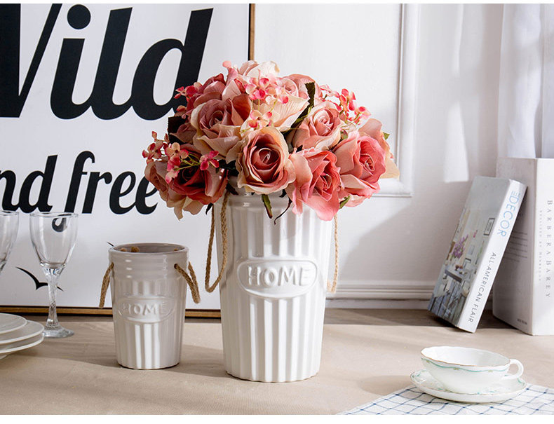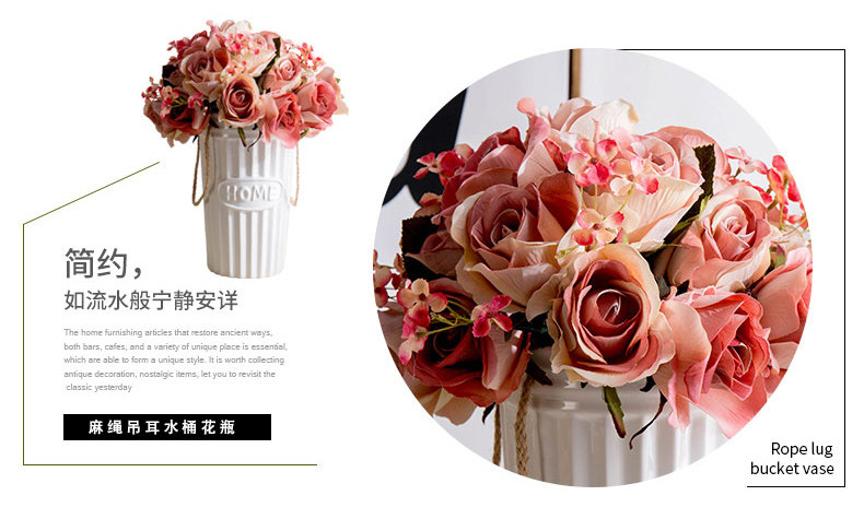 󰄬创意家居客厅餐桌卫生间陶瓷装饰品摆件干花假花插花窗台水桶花瓶