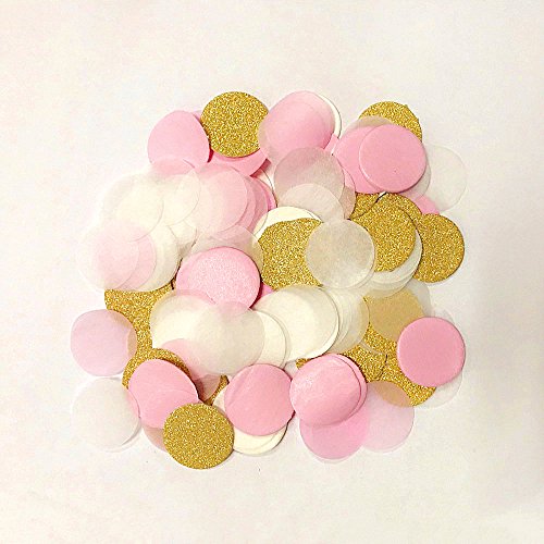 -. Feature : Size:1 inch/2.5cm / Color:Pink White and Gold / The gold glitter pieces are one sided (back side is white) / Can be useed as table decorations, you can make your own confetti balloons with them, or just put them into gift boxes, clear bottles as fillers / Great for Wedding ,Bridal Shower,Birthday party decoration