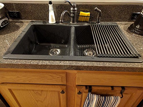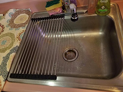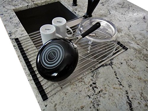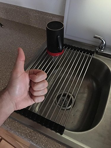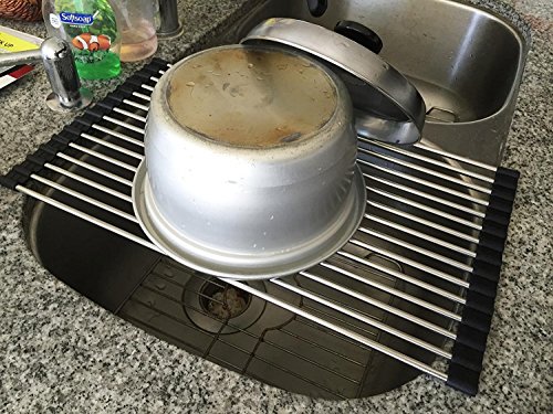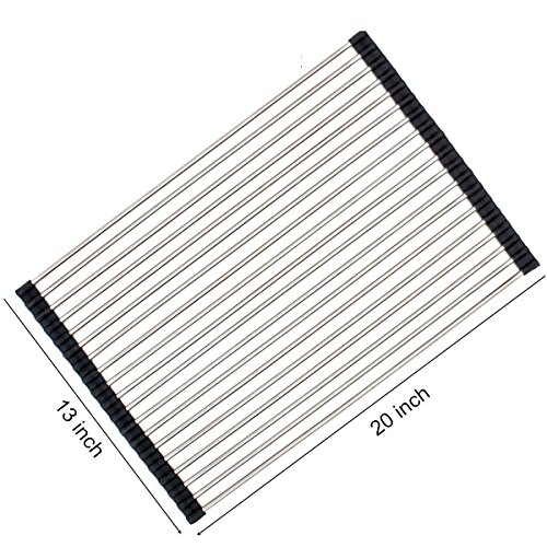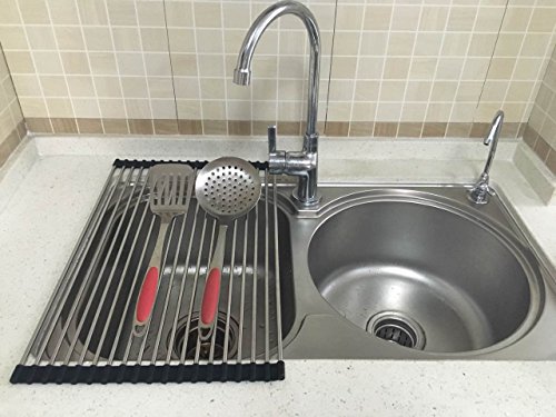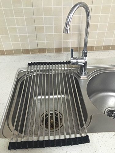 Ahyuan Roll-up Multipurpose Drying Rack Stainless Steel Silicon Foldable Over Sink Rack Black- 20.0 ''x13.0"