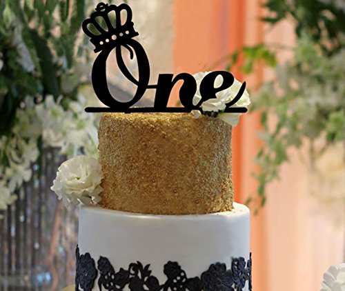 Birthday Cake Topper, KOOTIPS Acrylic Handmade 1st First Birthday Cake Topper Decoration - One -with Double Sided Gold Glitter Stock