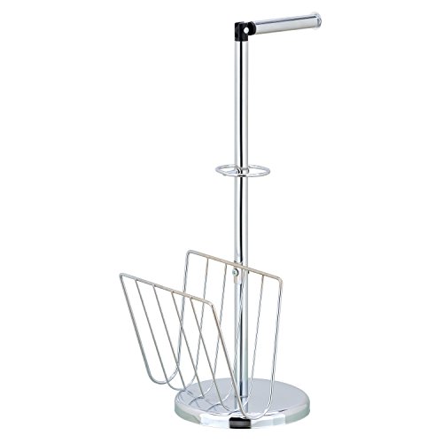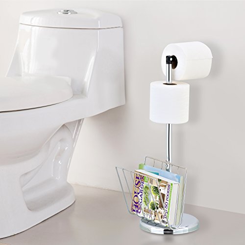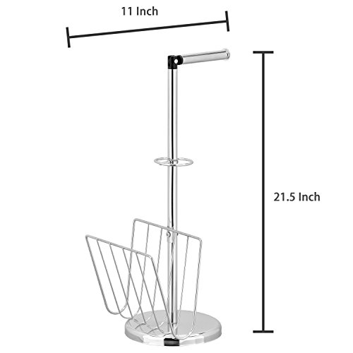Free Standing Toilet Caddy Tissue Dispenser w/ Magazine Basket Rack, Silver-Tone Metal