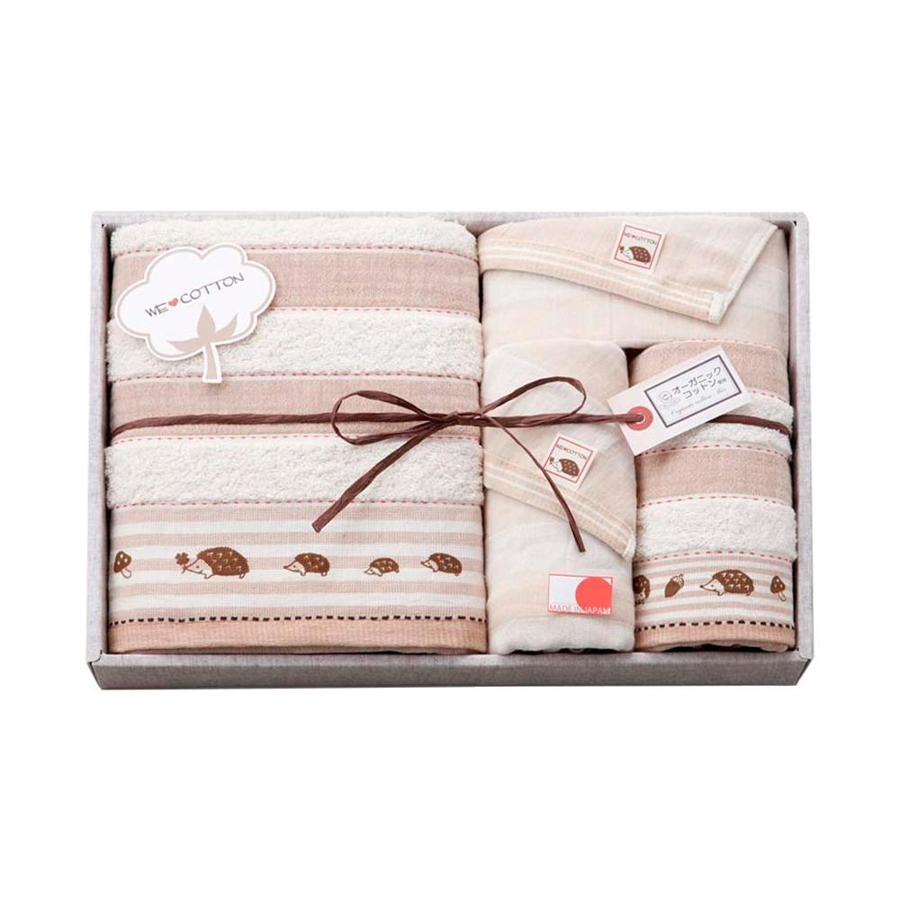 | タオルの名産地、泉州で作られた柔らかな手触りと抜群の吸水性を誇る日本製タオルのギフトセットです。タオルのヨコ糸部分にはオーガニックコットンを使用。可愛いハリネズミのプリントがほっこりした笑顔を運んでくれます。 |