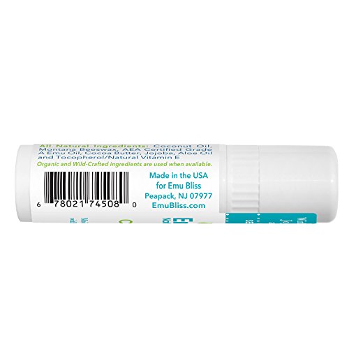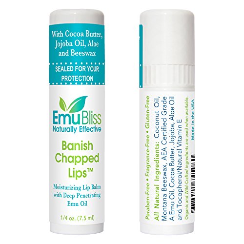 -. Binding : Health and Beauty -. Brand : Emu Bliss -. EAN : 0678021745080 -. Feature : NO CHEMICALS: Fragrance Free, Paraben Free, Gluten Free - Banish Chapped Lips it the best lip balm choice for those who don't want to put petroleum products on their lips. SAFE FOR PEOPLE WITH GLUTEN ALLERGIES. / UNFLAVORED, UNSCENTED and UNCOLORED so it's perfect for both men and women. / PREFERRED BY PEOPLE WITH DRY FLAKY LIPS for its long lasting moisture-locking ability. / LARGE ¼ OZ. SIZE TUBE contains 50% MORE PRODUCT than other lip balms. / CHANGE YOUR LIPS from dry and flaky to SOFT AND SMOOTH. -. Label : Emu Bliss -. Manufacturer : Emu Bliss -. ProductGroup : Health and Beauty -. ProductTypeName : HEALTH_PERSONAL_CARE -. Publisher : Emu Bliss -. Studio : Emu Bliss -. Title : ALL NATURAL LIP BALM FOR CHAPPED LIPS Banish Chapped Lips by Emu Bliss With Ultra Moisturizing Emu Oil, Coconut Oil, Beeswax, Cocoa Butter and Other Natural Lip Moisturizers For a Powerhouse Lip Balm. ¼ oz. Size Contains 50% MORE Than Most Lip Balms -. UPC : 678021745080