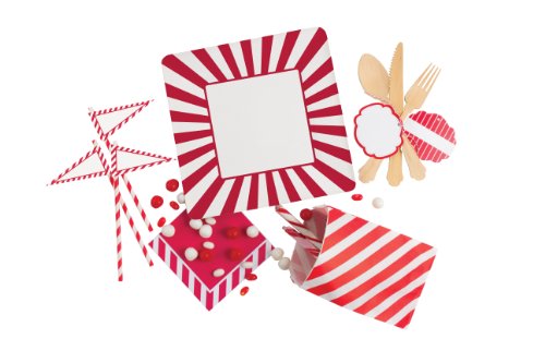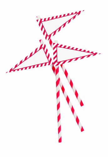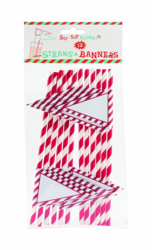 Party Partners Design 12 Count Retro Paper Straws with Banners, Red