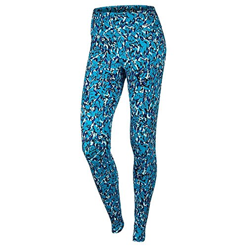 Features: Wide no-roll stretch waist Dri-Fit fabric with stay cool tech Allover graphics for athletic style Embroidered Nike logo on left hip Slim fitted leggings Approximate inseam 30" Fabric: 61% Cotton 33% Polyester 6% Spandex 0