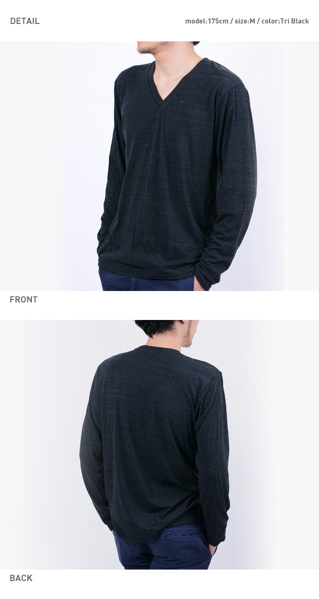 | 商品詳細 | American Apparel アメリカンアパレル アメリカンアパレルの長袖のVネックのトライブレンド地バージョン「Unisex Tri-Blend Long Sleeve V-Neck (ユニセックス トライブレンド ロングスリーブVネック)」です。型くずれが少なく柔軟性もあるポリエステルを使用です。コットン混で着心地の良さと耐久性をプラスしており、しっかりと補強された肩周りで繰り返しの洗濯にも強く、型くずれがしにくくなっています。Vネックにはシアーリブコットンバンド使用しています。 | ||