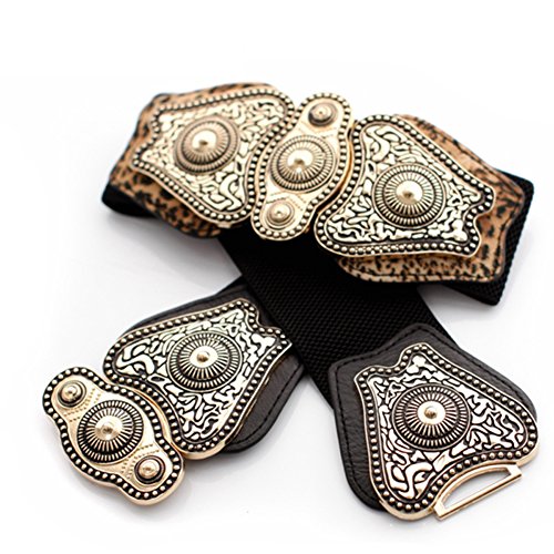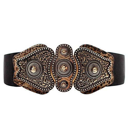 Binding : Apparel Product Description Maikun Womens Western Vintage Elastic Wide Waist Belt Timeless solid waist belt for you in this season! It is a classy belt that you will love for years of usage. Its solid metal buckle is certainly durable and the stretchy strap will make you feel really comfortable. Goes perfectly with your formal dresses and casual outfits. A great belt at a reasonable price, you deserve it. Elastic Web Strap Made of quality faux leather, this belt is easy to strech to fit different waist size. The web wide design will make you feel more comfortable when wearing it. Classy Metal Buckle Classy metal makes it durable for years of usage, and simple hook buckle will make you feel really covenient to put on or put off. Fashion Retro Design The vintage decorative pattern gives this belt a mysterious exotic flavor, and the black strap color always looks classic and suitable with white dress or other dark outfits. Features: BELTBUCKLE FEATURES: High Stretchy, Wide belt / Metal Hook Interlock Buckle SEASONS: Spring, Summer, Autumn, Winter COLOR: Black, Leopard PACKAGE CONTENTS: 1*Elastic Waist Belt Note: -Due to light and computer monitors, the color may vary slightly. -Please allow 1-2cm measurement difference due to manual measurement. -For any questions about our products or service, please feel free to contact us, we always respond within 24 hours and provide you best customer service.