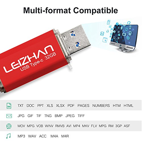 LEIZHAN USB 3.0 USB Flash Drive Type-C 3.1 32GB OTG Sticks Red Dual Double Plug Pen Drive For Type-C Interface Smart Phone Mobile U Disk