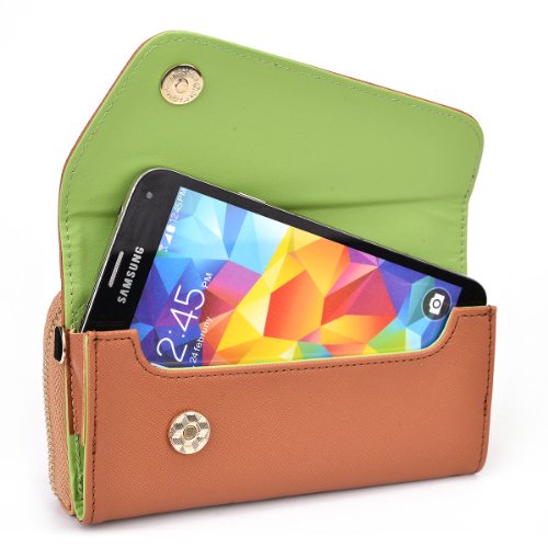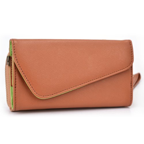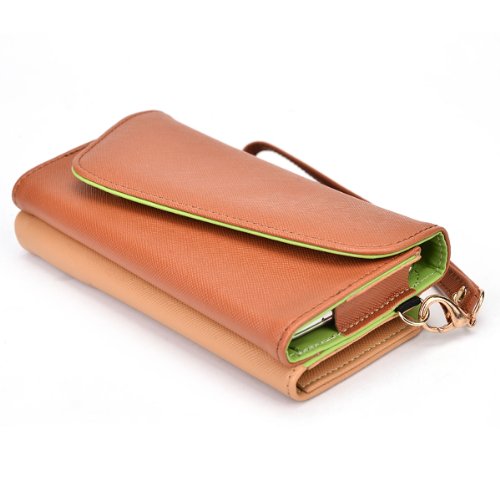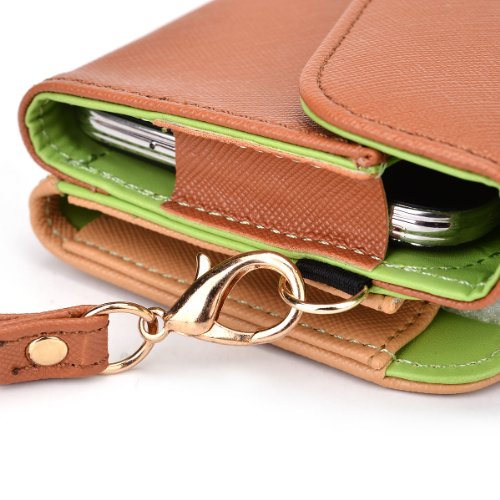 - Title : Apple iPhone 6 Womens Wristlet Clutch Case {Semi-Gloss Camel Tan Brown and Creme Tan with Matte Olive Green} with Credit Card Holder