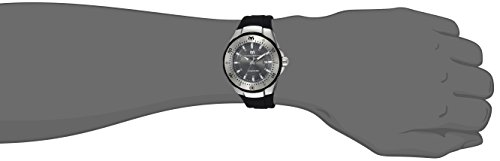 Charcoal metal sunray dial with silver luminous hands and hour markers, date display, black silicone band and screw down crown