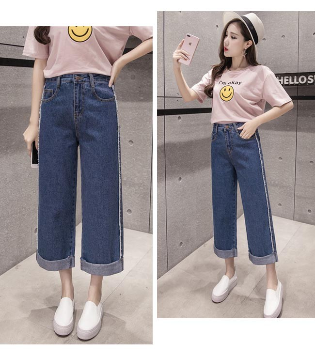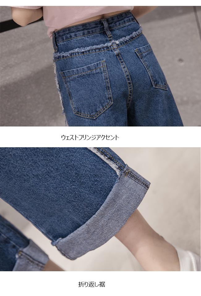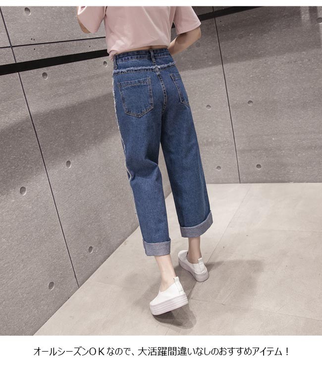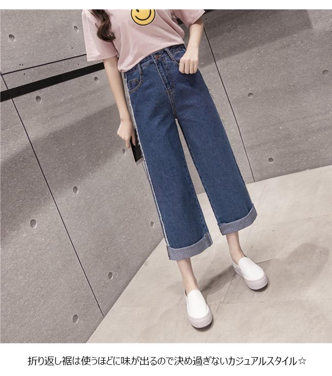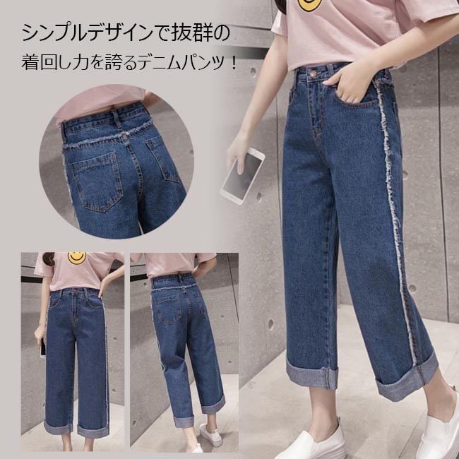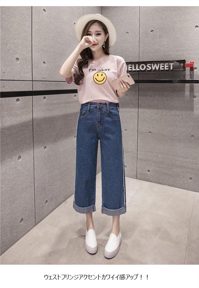 | 商品名 | デニムパンツ ワイドパンツ レディース フリンジ付き ゴム入りウェスト 九分丈 カジュアル リラックス ナチュラル ゆったり 夏 秋 |