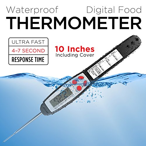 Waterproof Instant Read Kitchen Thermometer For Meat & Cooking. Sold In Elegant Gift Box. Best Ultra Fast Digital BBQ Grill Food Probe. Includes Internal Barbecue Meat Temperature Guide.